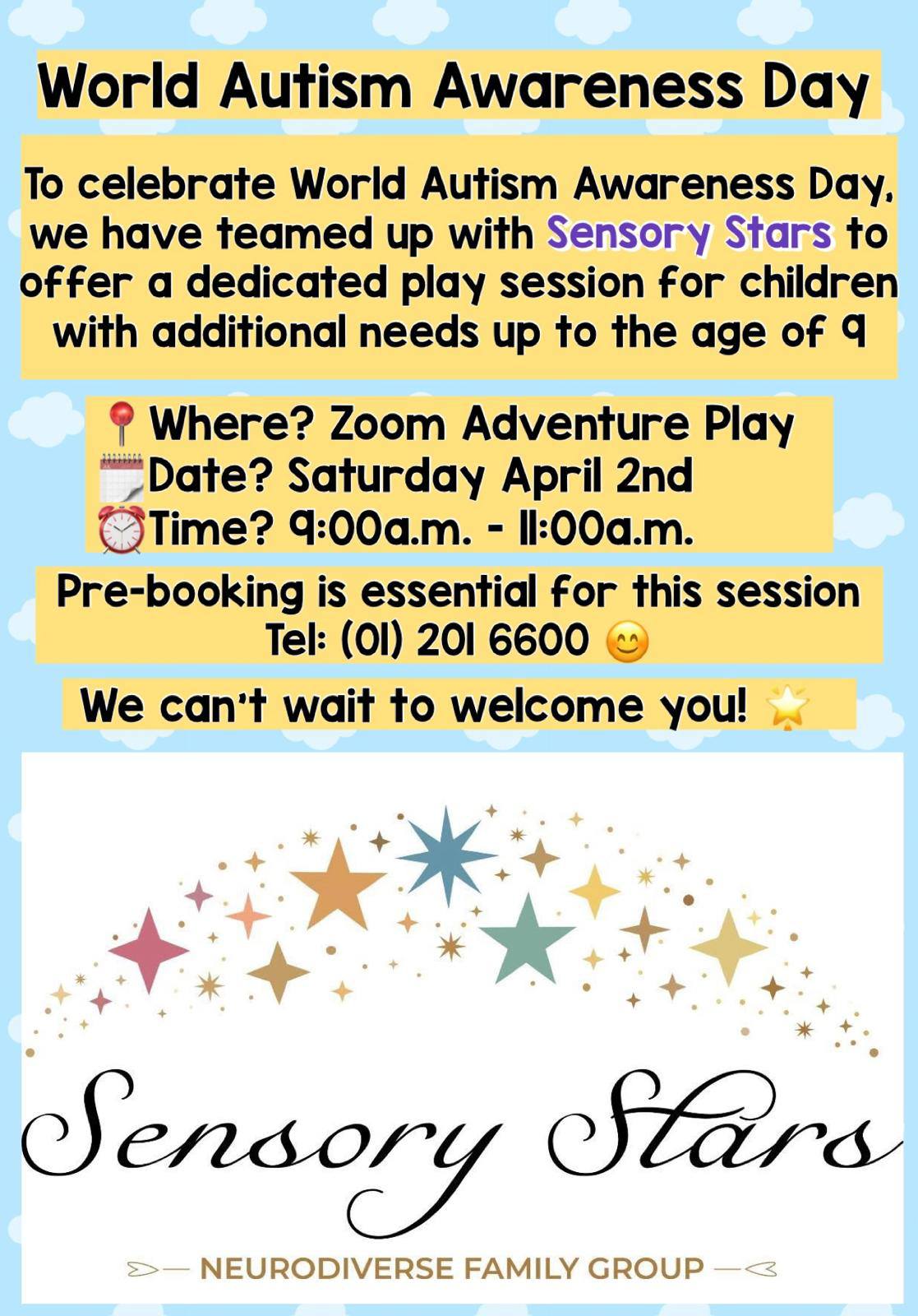 We are delighted to team up with Zoom Adventure Play for World Autism Day this Thursday 2nd April 9am! Pre -booking is essential for this session and it is suitable for children up to 10 years old. Please be sure to come down celebrate with us on what we hope will be a fantastic morning. Support, inclusion and acceptance
