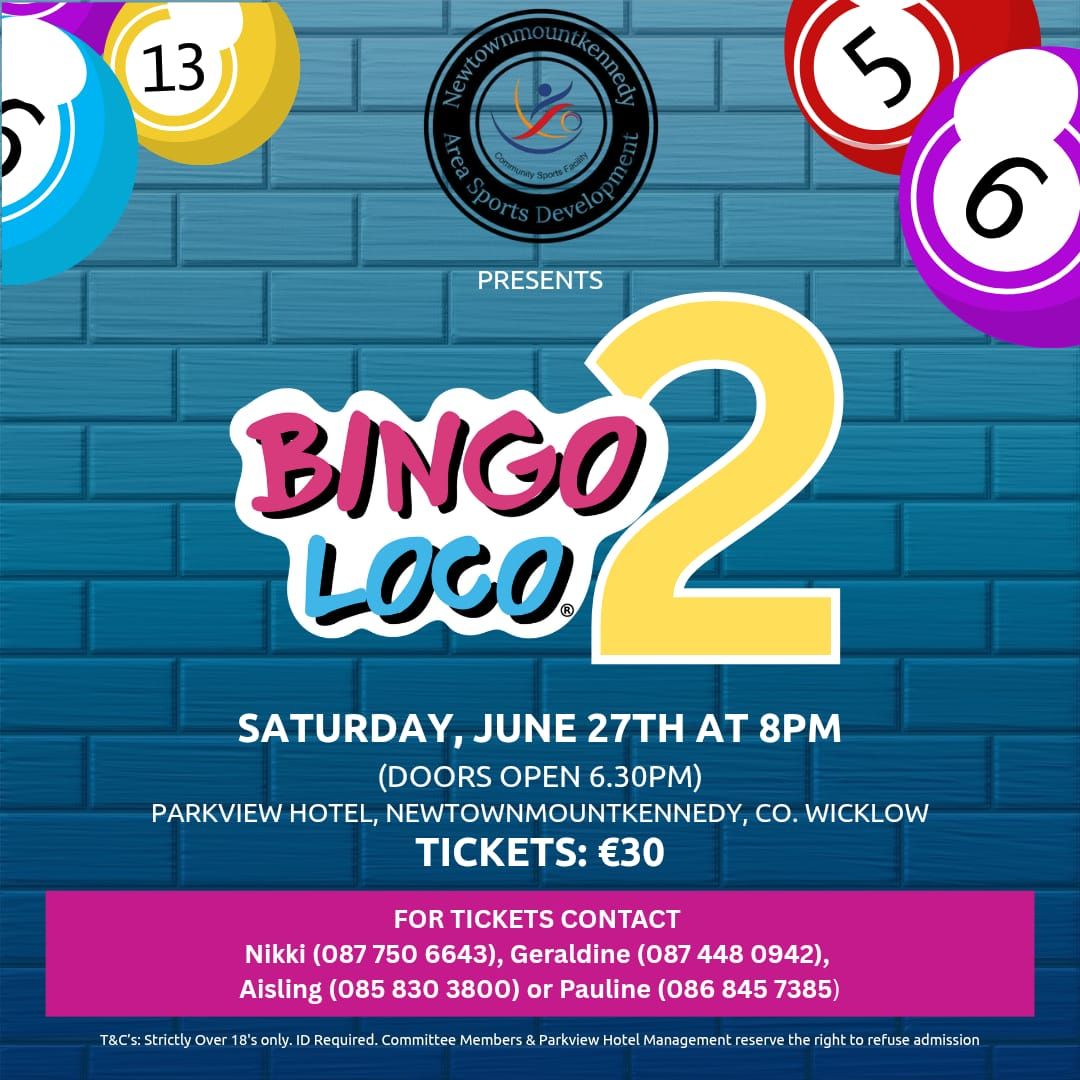 After last year’s huge success, Newtown Area Sports Development are pleased to announce that BINGO LOCO will return again on Saturday 27th June 2026 in The Parkview Hotel, Newtown 💃🕺💃🕺